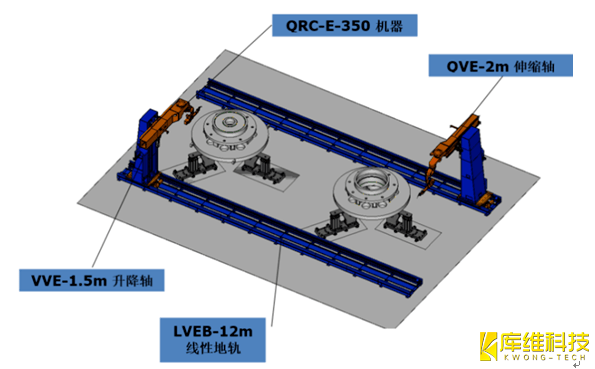 根據(jù)驅(qū)動(dòng)箱焊接結(jié)構(gòu)尺寸特點(diǎn)和要求分析,焊接工作站為雙機(jī)器人雙工位機(jī)器人焊接工作站,兩條平行的12m有效行程地面軌道上各安裝有一個(gè)三維伸縮臂,每套伸縮臂上配有一套七軸弧焊機(jī)器人,兩機(jī)器人可獨(dú)立工作或者一同工作,如圖2所示。弧焊機(jī)器人采用QRC-E-350型號(hào)關(guān)節(jié)型手臂機(jī)器人,其所有軸都有一個(gè)極大的旋轉(zhuǎn)范圍,使其具有非常大的靈巧性能和工作范圍。機(jī)器人的手臂設(shè)計(jì)細(xì)長而緊湊,且各軸的動(dòng)態(tài)性能高,保證了優(yōu)良的焊接精度、速度和可重復(fù)性。