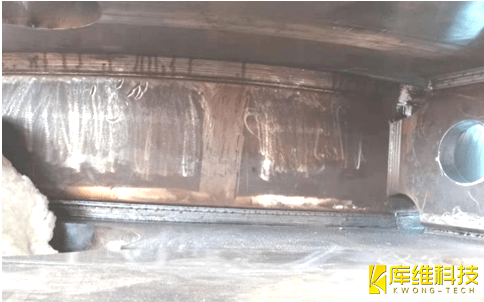 驅(qū)動(dòng)箱零件組對(duì)拼點(diǎn)后,進(jìn)行定位焊接,由于焊接機(jī)器人正式焊接時(shí)不能有效識(shí)別定位焊縫,若定位焊縫尺寸較大,焊接容易產(chǎn)生缺欠。因此,在正式焊接前需要對(duì)定位焊縫兩端10~15mm打進(jìn)行磨處理,圓滑過渡,保證能夠與正式焊縫良好結(jié)合。定位焊縫要求焊透,不允許存在裂紋、未熔合、氣孔等缺欠。