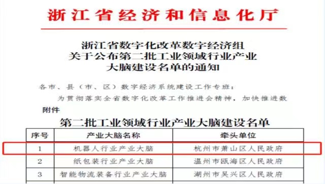 機器人行業產業大腦入選浙江省第二批工業領域行業產業大腦建設名單