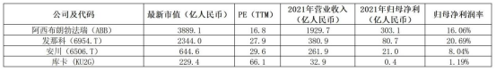 行業平均PE(TTM)達到了76倍,剔除負值,可以達到94倍之多;對比美股上市的瑞士機器人巨頭阿西布朗勃法瑞(ABB)2021年4765億人民幣的市值和最高42倍的PE(TTM),歷史和最新的PE(TTM)也沒有超高30倍;日本的兩家世界級頭部機器人上市公司安川(Yaskawa Electric Corp.6506)和發那科(發那科公司.6954)的PE(TTM)也不超過30倍,分別為29.6倍和27.9倍,即使目前市值最小的德國庫卡PE(TTM)較高達到66.1倍,但也不及國內平均估值。