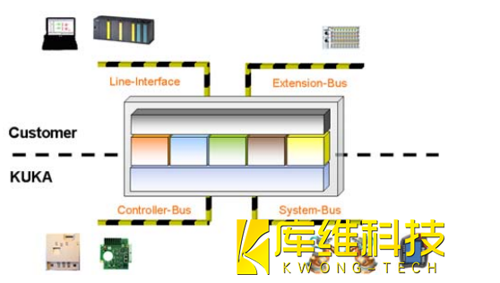 KR C4 控制系統(tǒng)內(nèi)具有各種基于以太網(wǎng)的總線系統(tǒng)。