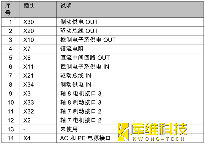 警告:若將機(jī)器人控制系統(tǒng)關(guān)斷,下列部件仍可能在長達(dá) 5 分鐘的時(shí)間內(nèi)帶電 (50 … 780 V):