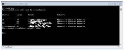 1. 在光標位置輸入 “net use” 指令,然后按 【Enter】鍵確認