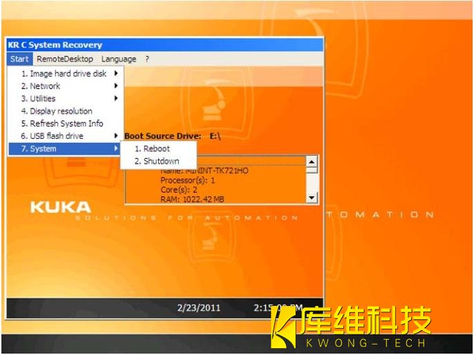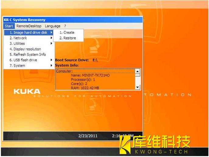 庫(kù)卡機(jī)器人操作步驟 在該項(xiàng)操作方式里,需要使用一個(gè)外置監(jiān)視器和顯卡。