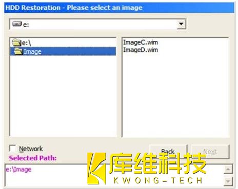 5. 為分區(qū) C 選取存儲(chǔ)器映射 C.WIM,或?yàn)榉謪^(qū) D 選取存儲(chǔ)器映射 D.WIM 。總是建立兩個(gè)分區(qū)。 點(diǎn)擊 【 下一步】鍵繼續(xù)。就此建立硬盤映射。