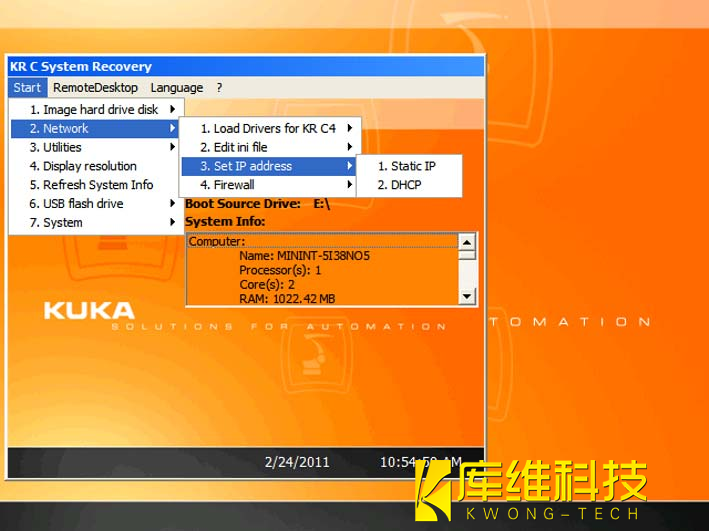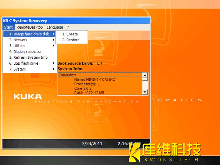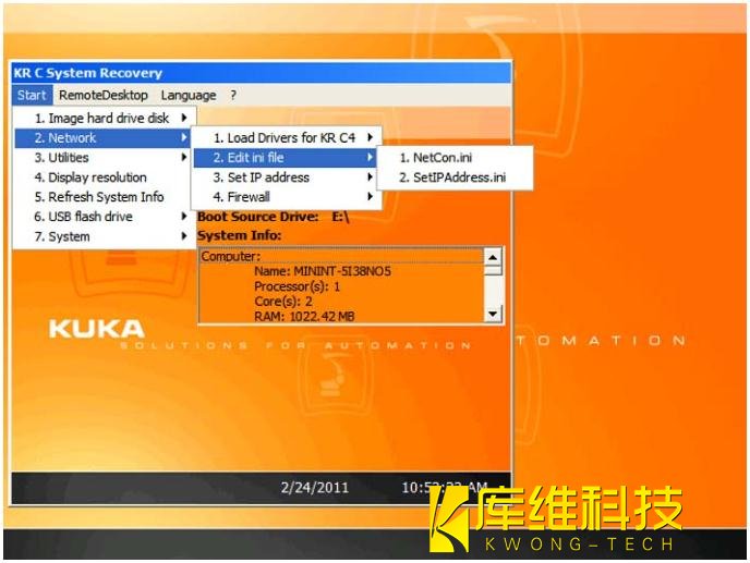 2. 插上具有起動(dòng)功能的庫卡 U 盤,然后重啟工業(yè)機(jī)器人控制系統(tǒng)。