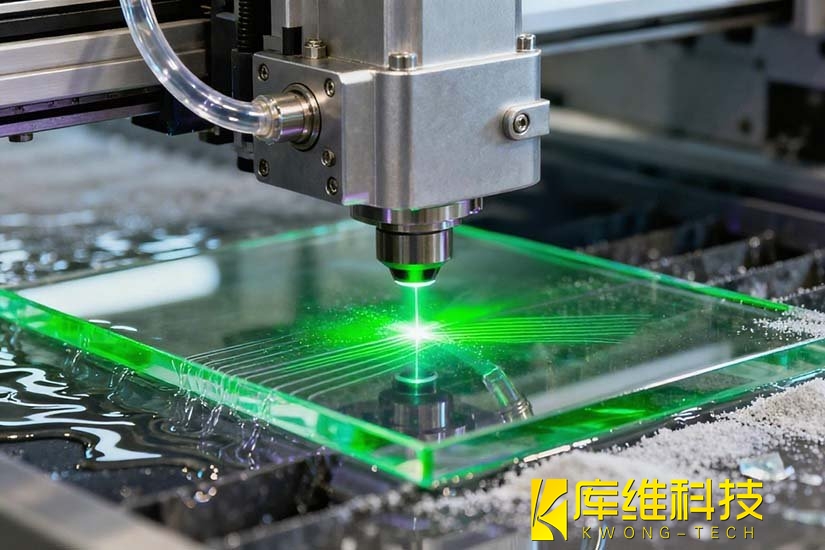 綠光激光(532nm):綠光在水中傳輸損耗小,且波長短導致光能轉(zhuǎn)化效率高,尤其適合硬脆材料加工。例如,碳化硅(SiC)對綠光的吸收率比紅外光高3倍以上,可實現(xiàn)切縫窄(≤20μm)、邊緣無崩邊的精密切割。