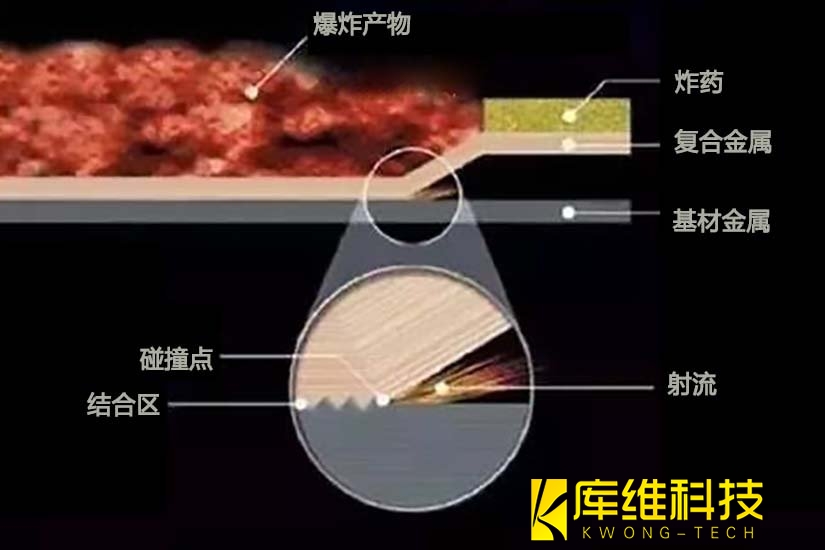 在兩塊金屬材料碰撞時,其表面的薄膜會發(fā)生塑性變形。由于碰撞速度極高,可達 200 - 500m/s,在極短時間內(nèi),這些薄膜會從基體上噴射出去。同時,少數(shù)原子層因碰撞速度快而變成 “漿狀物”。碰撞的角度(安裝角)使得漿狀物在碰撞點之前噴射出去,有效地清除了表面玷污層,如金屬表面的氧化膜和吸附層等,從而留下清潔的金屬表面。當爆炸完成后,漿狀物迅速冷卻,在融合線處形成一種金屬與另一種金屬的冶金結合。這種結合過程中,金屬基體的物理和機械性能并沒有降低,并且在融合線處形成的波形常常被描述為 “液流” 碰撞,反應區(qū)中兩種成分的金屬以粘性流體的方式相互作用。