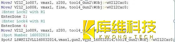 比如說:在機(jī)器人走到某一點(diǎn)的時(shí)候,有可能和其他機(jī)器人發(fā)生干涉,那在這個點(diǎn)的前一點(diǎn)或更前面的點(diǎn),就要提前給出提示,用備注行的形式,寫出會與哪個機(jī)器人發(fā)生干涉,如上圖的: !enter lock with R1。但是EnterZone2這個就不需要寫了,因?yàn)檫@個是后續(xù)和PLC交換信息時(shí)候才會用到,前期程序?qū)耄瑱C(jī)器人會認(rèn)不到這個命令而報(bào)錯。